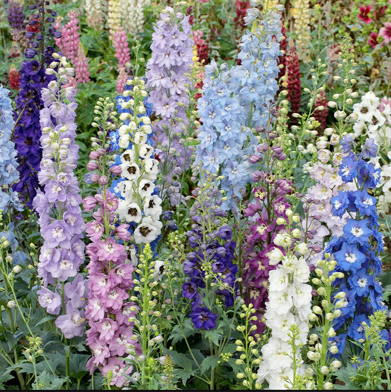 - 델피니움의 수직 스파이크 배경에, 앞쪽에는 지피식물이나 낮은 허브(라벤더, 게라늄)와 함께 조합하면 입체감 있고 풍성한 느낌을 줄 수 있어요.